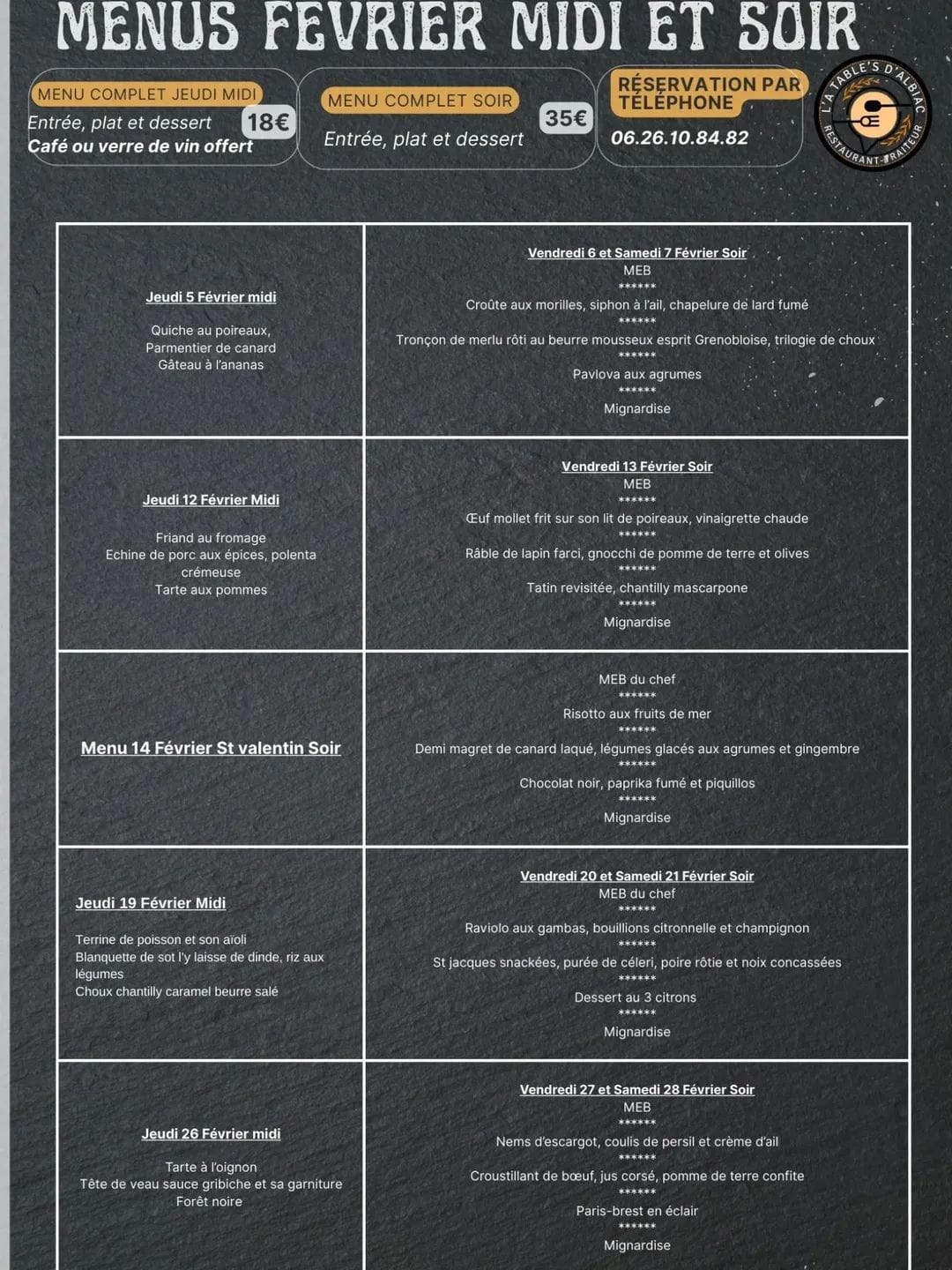 voici le catalogue de leurs prestations: Catalogue traiteur LA tableS d’ALBIAC